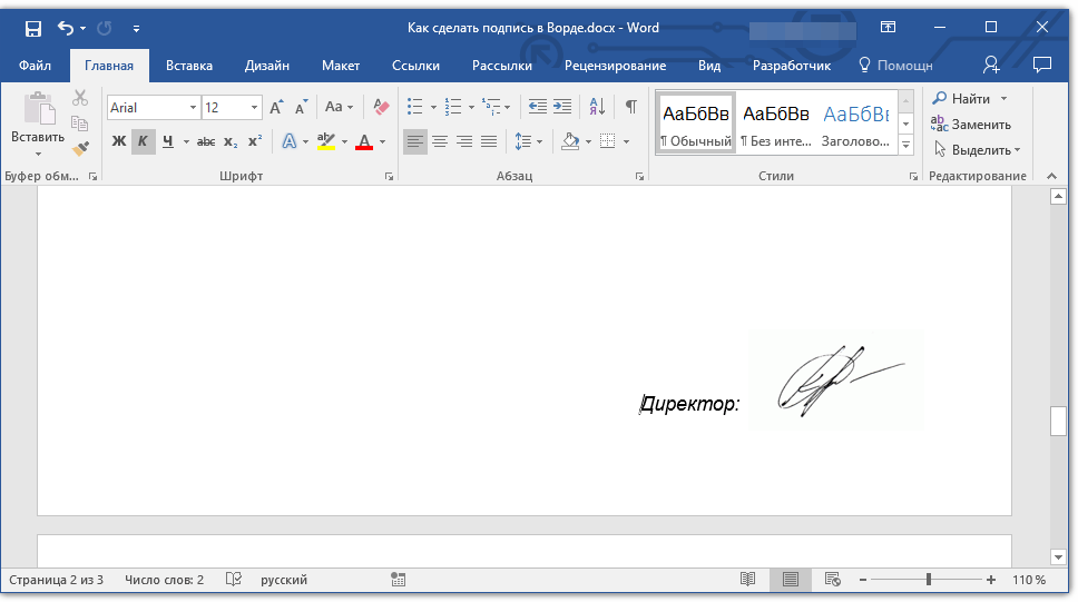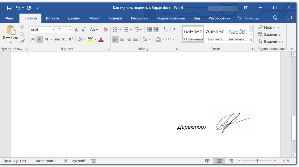 Введенная от руки подпись придает вашему документу индивидуальность. Вы можете отсканировать свою подпись, сохранить ее как рисунок, а затем вставлять в документы.