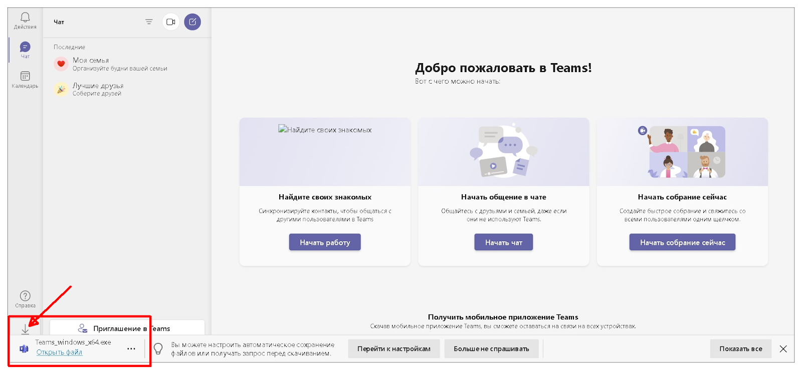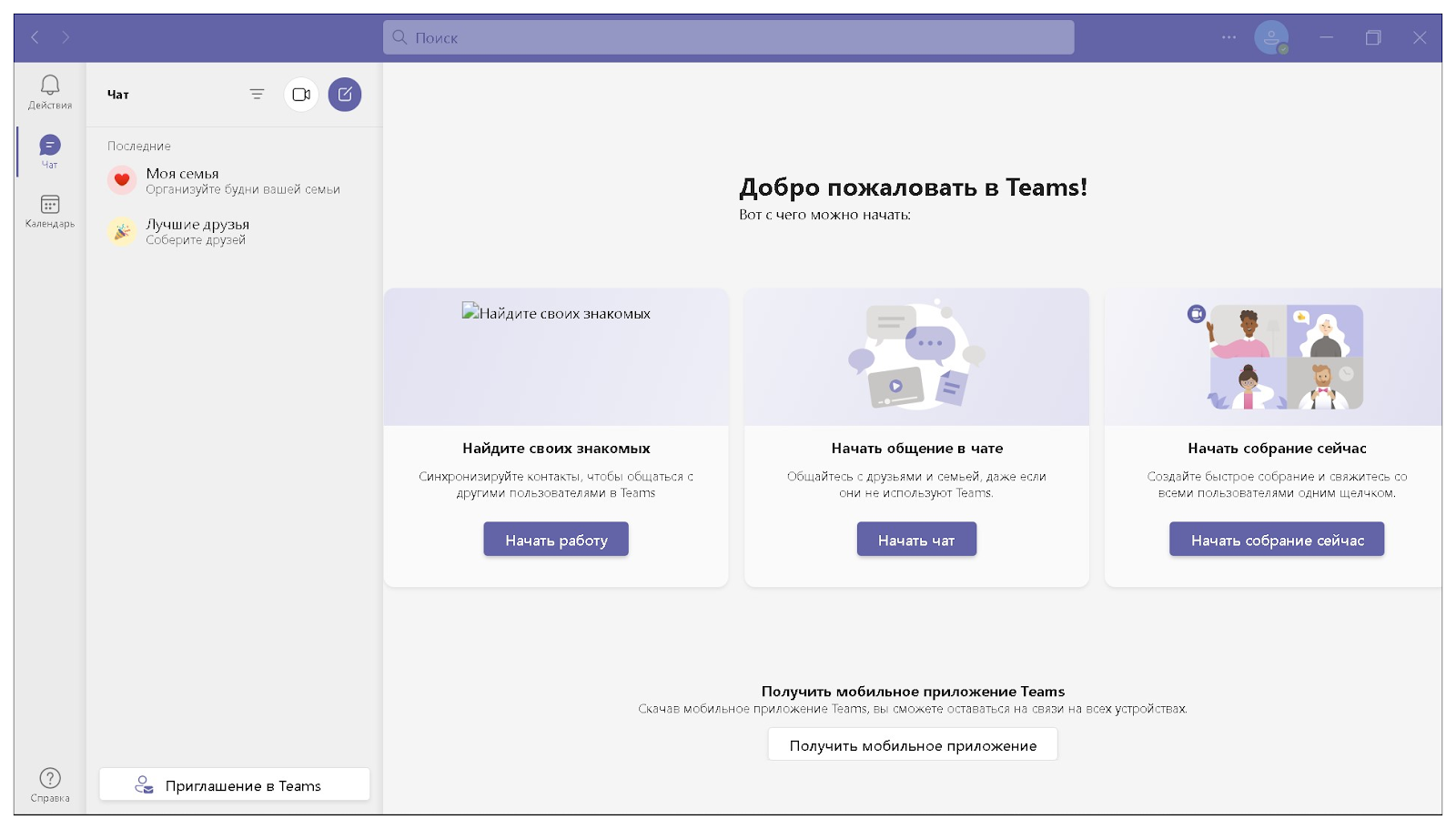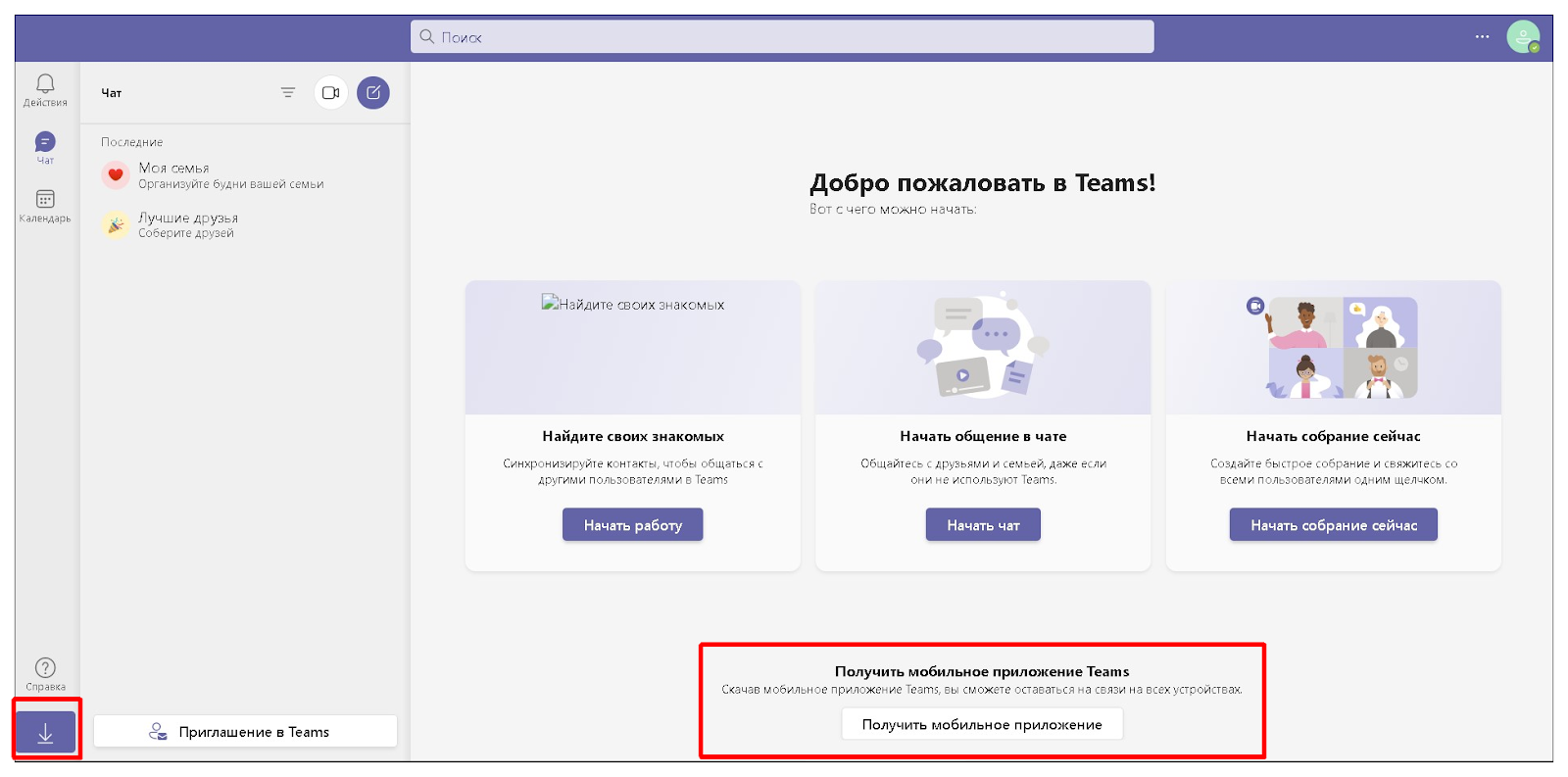 Этого достаточно, чтобы получить доступ к бесплатной онлайн-версии MS Teams для личного использования. Здесь же можно скачать приложение на ПК или выбрать мобильную версию программы.