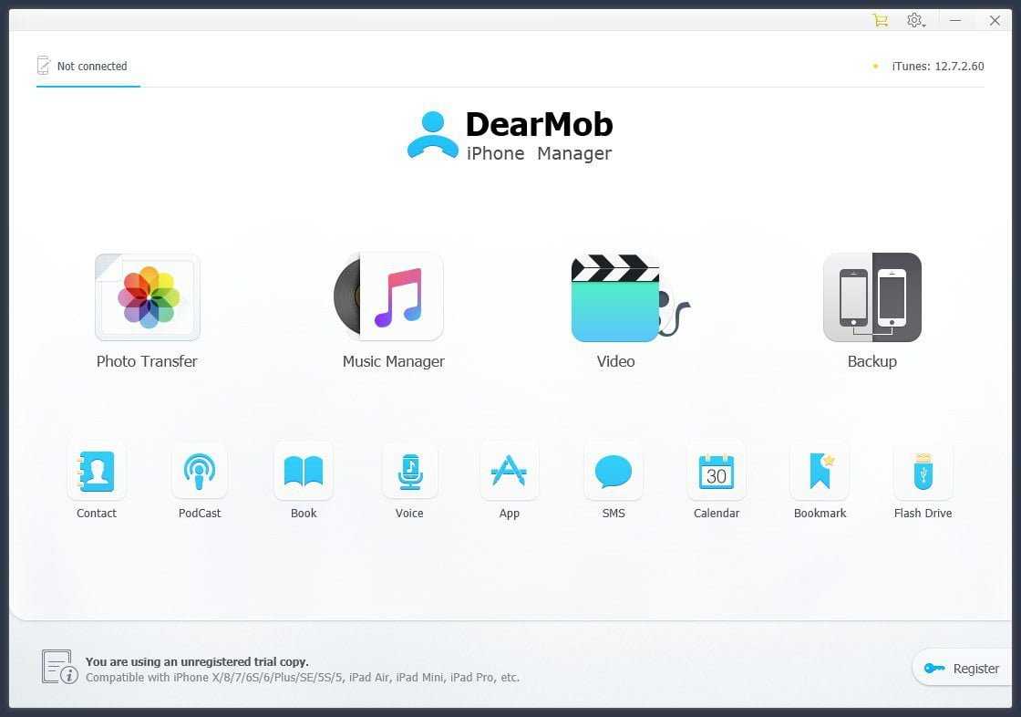 DearMob iPhone Manager, доступный для Windows и Mac, представляет собой комплексный инструмент управления данными iPhone, который позволяет вам лучше контролировать файлы вашего iPhone iPad. Его простой и интуитивно понятный интерфейс может быть использован даже самым неопытным пользователем iOS.