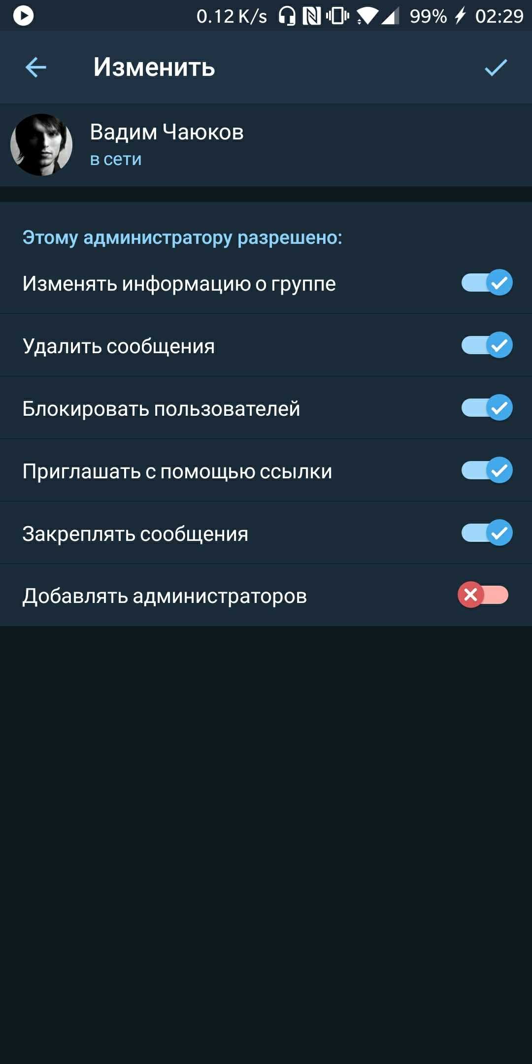 Начиная с версии 5.8 в Telegram появилась возможность передавать право собственности на групповые чаты, предоставив полные права другому администратору. Это будет полезно при смене работы, или если вы просто хотите уйти в отставку с должности создателя.