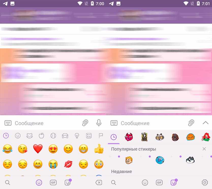 - Нажмите на иконку смайлика справа от поля ввода сообщения.