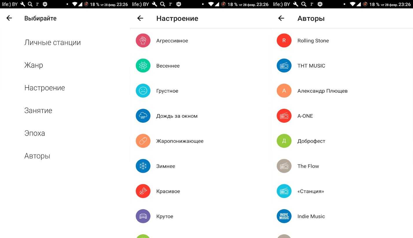 То есть именно та, которую пользователь слушал чаще всего. А вообще приложение имеет удобное деление на категории по жанрам, настроению, эпохам, стилям, настроению и так далее. Программа полностью на русском языке.