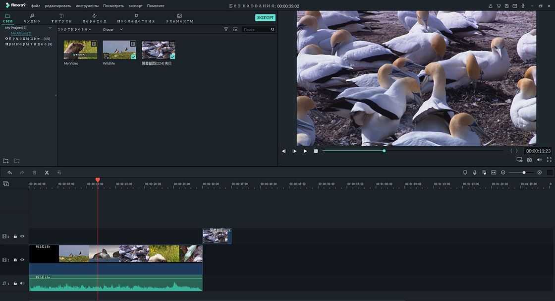 - Экспорт видео в нескольких форматах или оптимизация видео напрямую через YouTube, Facebook, Vimeo и т.д.;