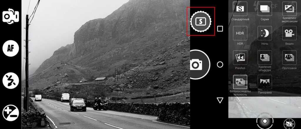 5. Далее нужно вернуться в стартовое меню и кликнуть на значок режимов в правом нижнем углу. Здесь можно выбрать автоматическую съемку, создание панорамы, инструмент для удаления лишних объектов, применение HDR-эффекта или ночной режим.