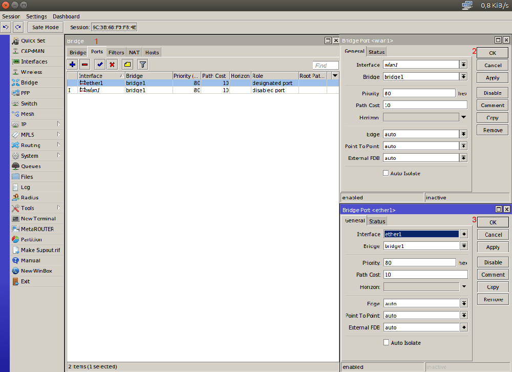 После первого подключения, открываем меню «Bridge» и добавляем новый интерфейс-бридж.