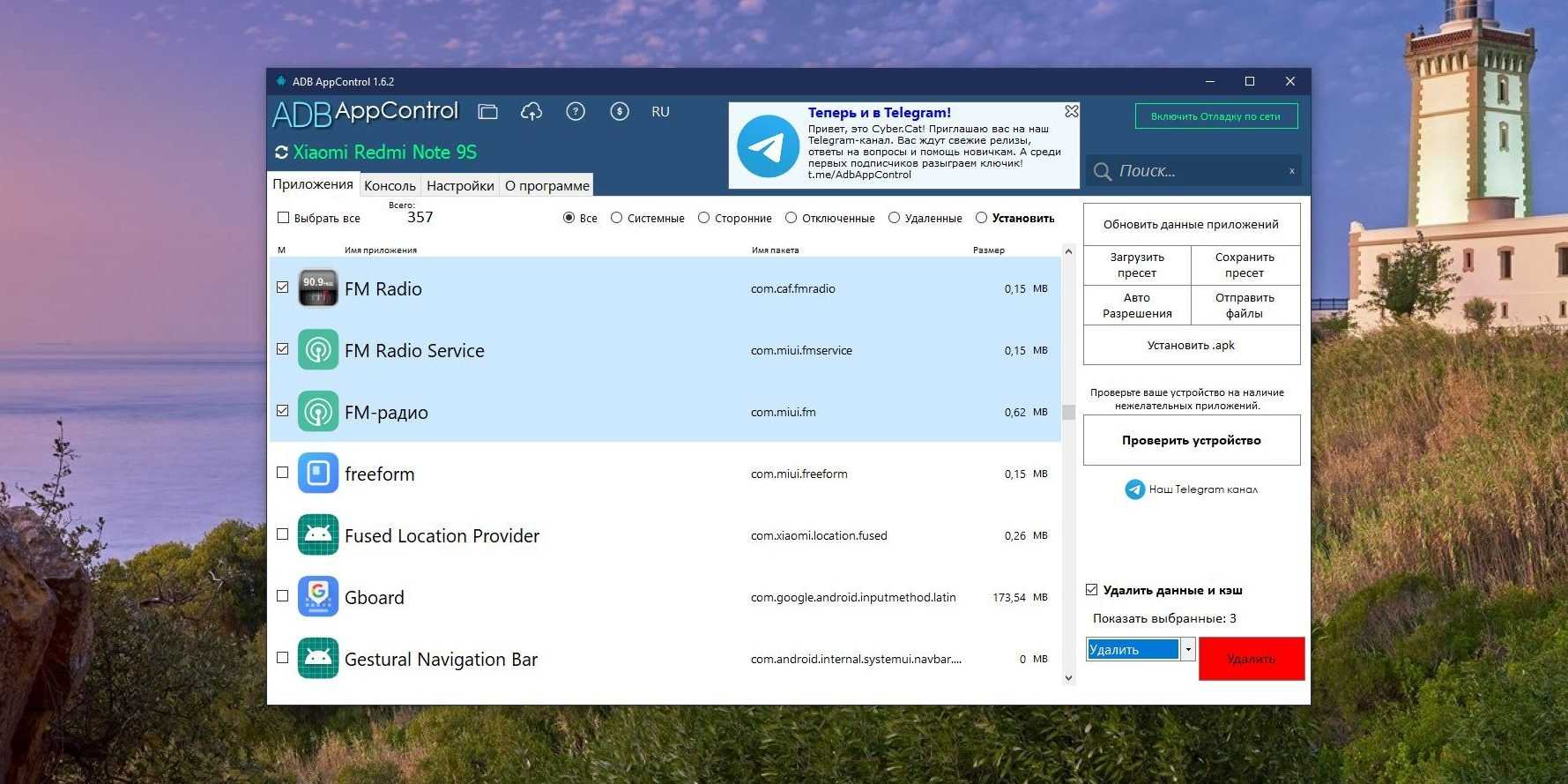 Если установка автоматически не удалась, скопируйте файл com.cybercat.acbridge.apk из папки C:ADB_AppControl_162adb в память смартфона, отсоедините USB‑кабель и инсталлируйте файл вручную, как обычную программу. Для этого понадобится разрешить установку из неизвестных источников.