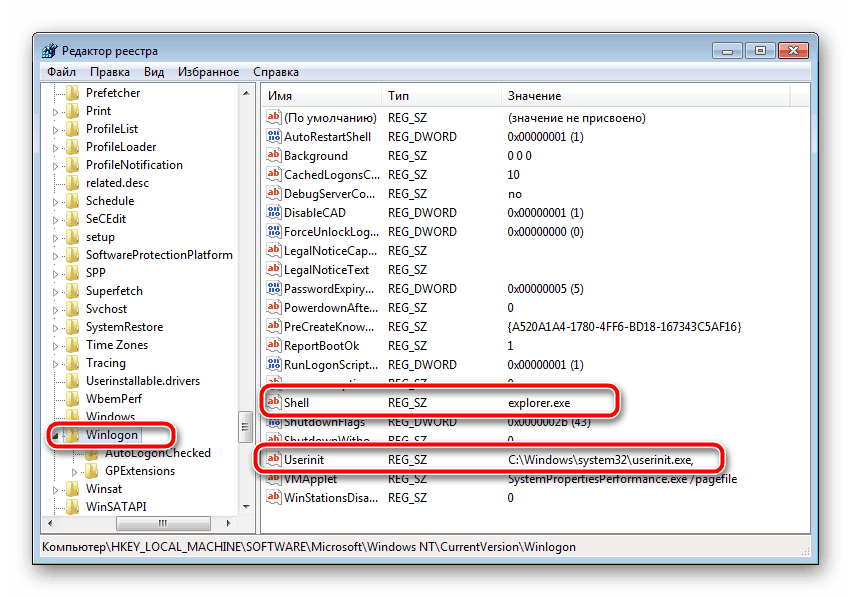 Проверьте значение параметров Shell и Userinit. Для первого должно стоять explorer.exe, а для второго – C:Windowssystem32userinit.exe.Если значения отличаются, поочередно нажмите правой кнопкой мыши на параметре, выберите пункт «Изменить» и напечатайте в соответствующую строку необходимое.