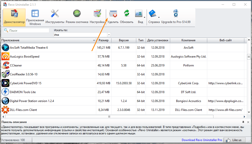 Описанный ранее способ удаления программ не всегда бывает эффективен, так как после деинсталляции могут остаться данные на жестком диске и в реестре Windows. Поэтому надежнее воспользоваться сторонней утилитой, специально созданной для удаления приложений, например, «Revo Uninstaller». Скачать ее бесплатную версию «Revo Uninstaller Free» можно по этой ссылке с официального сайта разработчика.