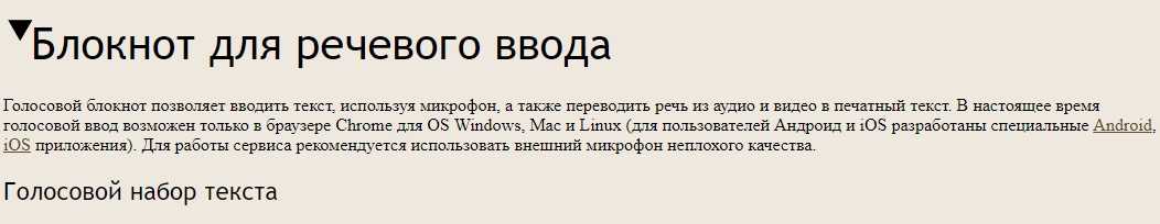 Такие сервисы удобны тем, что позволяют переводить голос в напечатанный текст без установки программ на компьютер. При работе с каждым приложением необходимо давать разрешение на использование встроенного (подключенного) микрофона.