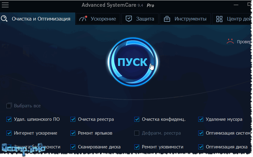 Не первый раз рекомендую эту программу: позволяет всего за один-два клика мышкой очистить Windows от мусора, исправить ошибки и неверные записи в реестре, провести оптимизацию системы, задать оптимальные настройки для более быстрой работы сети и ОС и др. В общем, большой добротный набор утилит, которые нельзя не использовать при оптимизации и настройке Windows (на мой взгляд ).